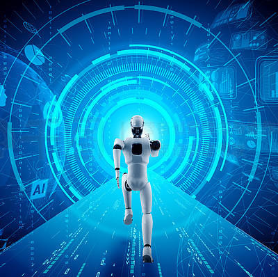 排爆机器人在边境巡逻,排查可疑人员携带的爆炸物品。